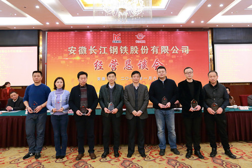 1月6日,在一年一度的经营恳谈会上,长江钢铁对2015年度15家优秀经销商单位及10家优秀供应商单位进行表彰,感谢他们对长钢做出的积极贡献。