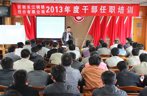 为适应生产经营和发展需要,全面提升管理人员综合素质,公司集中开展为期一个月的2013年度干部任职培训工作。10月15日下午2点,董事长李建设以《我们面对的形势与未来》为题,亲自开讲第一堂培训课,来自公司各单位的班组长以上干部近百余人参加了学习。