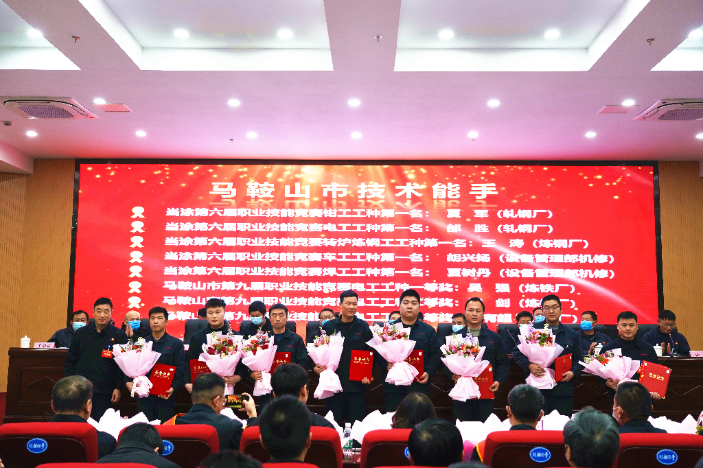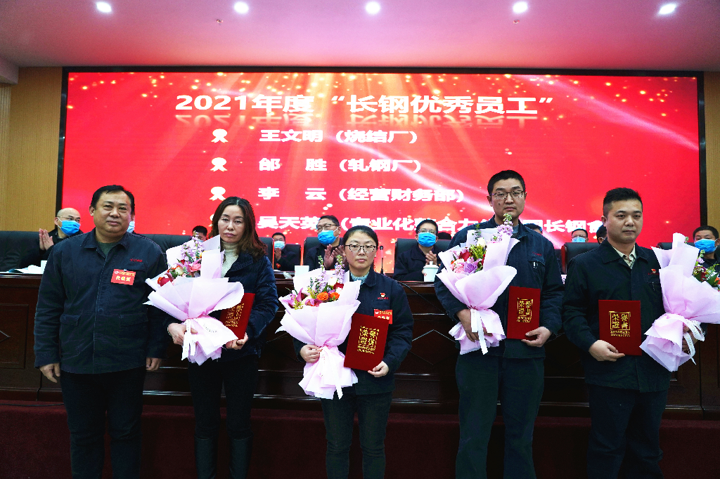 会议还对2021年度“长钢优秀员工”、2021年度“最美长钢人”、马鞍山市技术能手、马钢集团岗位技术能手、2021 年度马钢“优秀员工”、马钢集团2021年度银牛奖、中国宝武2021年度铜牛奖、当涂县第五届劳动模范、2017—2020年度马鞍山市劳动模范等奖项进行了现场表彰。