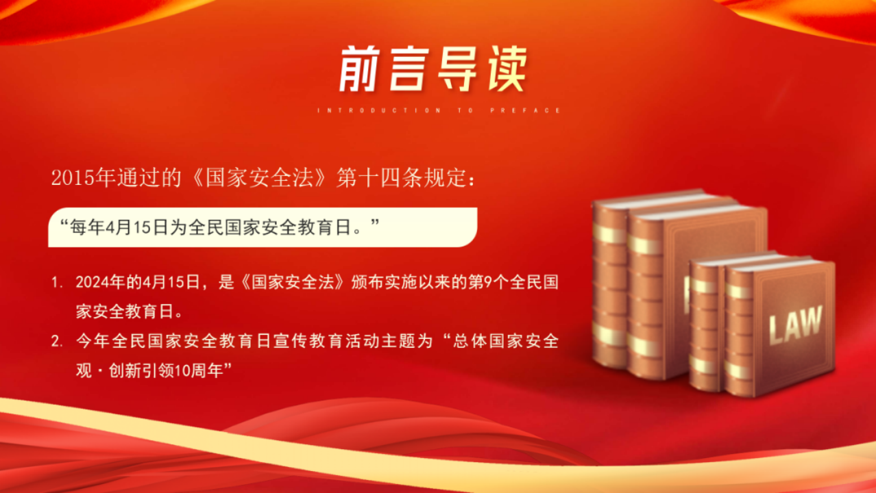 2024 年是习近平总书记提出总体国家安全观10周年,4 月15日将迎来第九个全民国家安全教育日。今年的活动主题为“总体国家安全观·创新引领10周年”。